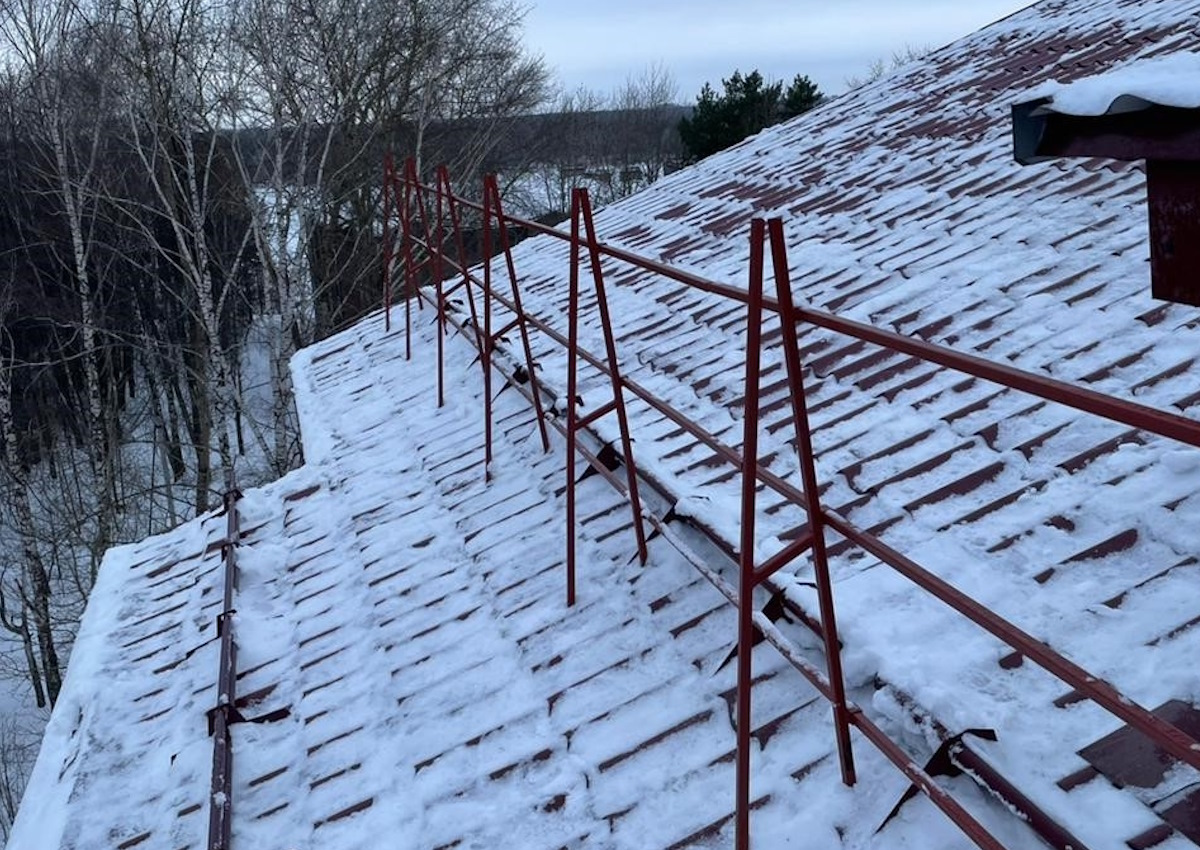 Монтаж снегозадержателей